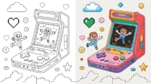 Frame colored pages or hang them as posters — perfect for gaming fans.