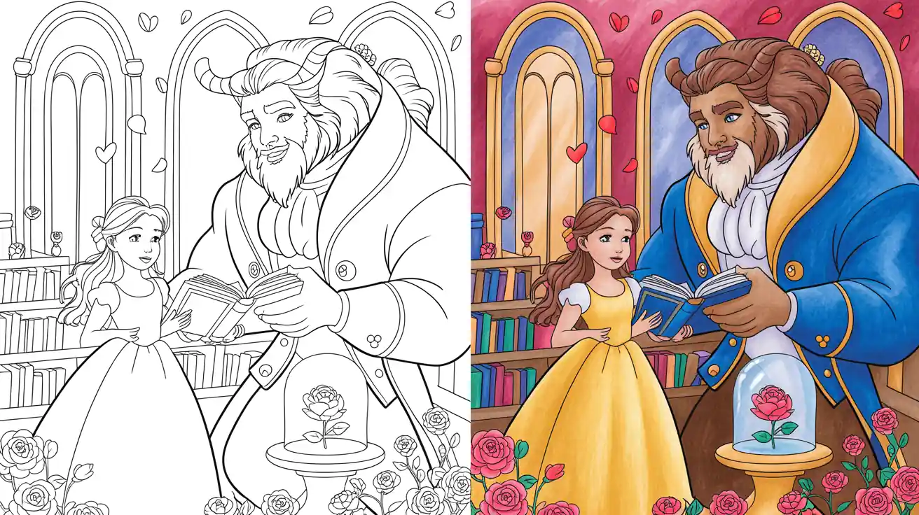 Step into a magical world of romance, bravery, and enchantment with our Beauty and the Beast coloring pages.